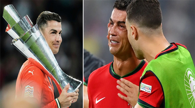 दिग्गज खिलाड़ी क्रिस्टियानो रोनाल्डो उस समय भावनाओं पर काबू नहीं रख पाये जब स्पेन के खिलाफ नेशंस लीग फुटबॉल के फाइनल में पुर्तगाल के गोलकीपर डिएगो कोस्टा ने अल्वारो मोराटा की चौथी पेनल्टी बचाई और फिर रुबेन नेवेस ने अपनी टीम की पांचवीं पेनल्टी को गोल में बदलकर जीत सुनिश्चित कर दी। टीम की जीत तय होते ही रोनाल्डो की आंखों में खुशी के आंसू छलक आये। उन्होंने कहा कि देश के लिए ट्रॉफी जीतने से बड़ा कुछ भी नहीं। पुर्तगाल के इस 40 साल के कप्तान ने कहा, ‘‘मैंने अपने क्लबों के साथ कई खिताब जीते हैं, लेकिन पुर्तगाल के लिए जीतने से बड़ा कुछ नहीं है।’’ रोनाल्डो ने इस प्रतियोगिता में टीम की सफलता में अहम भूमिका निभाई।