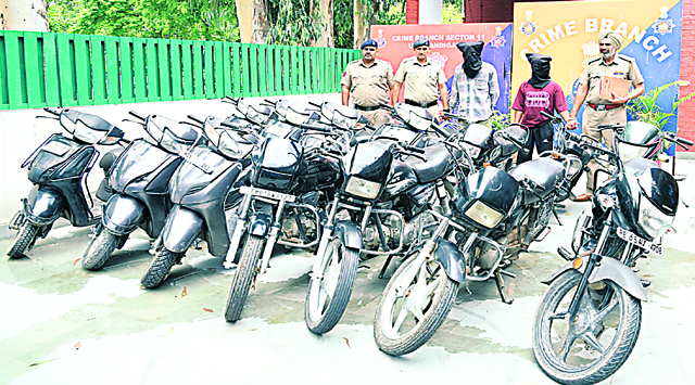 आरोपियों को शहर के विभिन्न इलाकों से पकड़ा गया। पूछताछ में कई पुराने अनसुलङो मामलों का भी खुलासा हुआ है। क्राइम ब्रांच की इस कार्रवाई से चंडीगढ़ के विभिन्न थानों में दर्ज 8 ई-एफआईआर से जुड़े चोरी के मामलों को सुलझा लिया गया है, जिनमें थाना 39, 34, 36, मनीमाजरा और सरंगपुर शामिल हैं। आरोपी गांव बनसेपुर, जिला मोहाली निवासी बिक्र म राम सिंह उर्फ बिक्रम के पास से 1 मोटरसाइकिल, 1 लूना (टीवीएस) बरामद हुई है। उसपर सारंगपुर थाने में पहले से एक चोरी का मामला दर्ज है। मलोया कॉलोनी निवासी बुधराम के पास से पुलिस को 1 मोटरसाइकिल, 1 एक्टिवा बरामद हुई है।