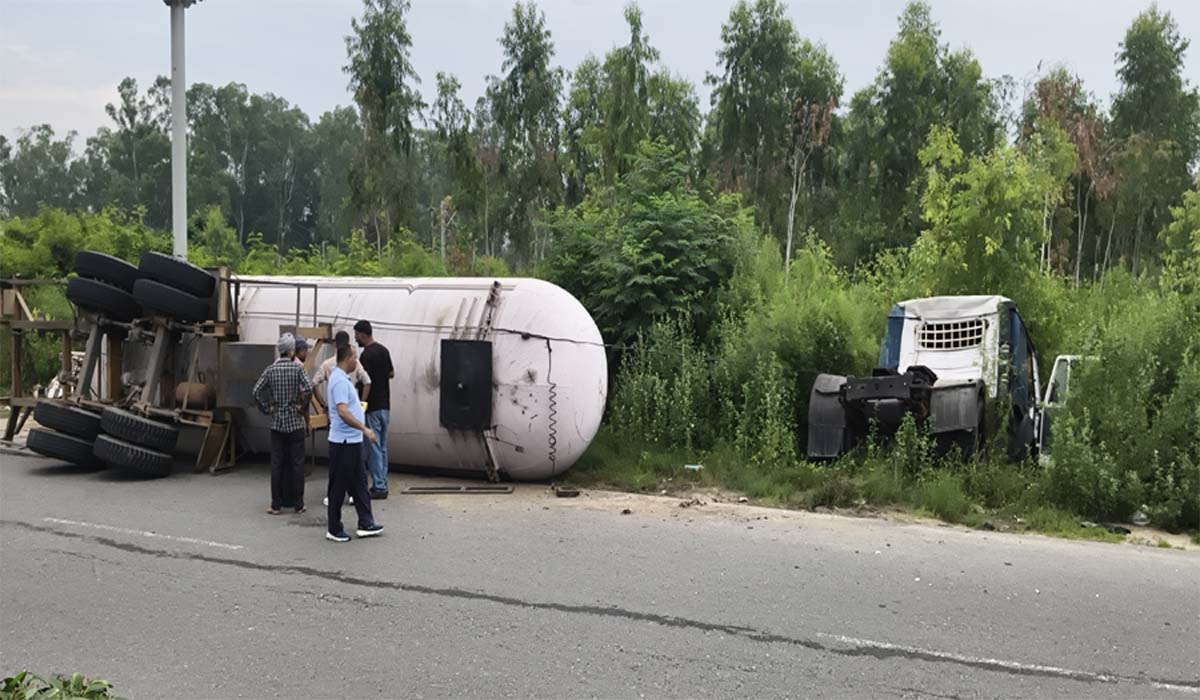 जालंधर के आदमपुर एयरबेस के नजदीक वीरवार देर रात एक बड़ा हादसा होते-होते टल गया। जहां हिंदुस्तान पेट्रोलियम का गैस से भरा टैंकर अनियंत्रित होकर सड़क किनारे फुटपाथ से टकरा गया और पलट गया। बता दें कि ये हादसा रात करीब 12 से 1 बजे के बीच हुआ। टक्कर इतनी जबरदस्त थी कि टैंकर का कैबिन अलग हो गया और उसमें से तेज़ी से गैस का रिसाव शुरू हो गया।