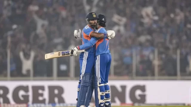 सलामी बल्लेबाज संजू सैमसन और अभिषेक शर्मा ने पहले विकेट के लिए तूफानी अंदाज में 63 रनों की साझेदारी की. संजू के बल्ले से 22 गेंदों में 37 रन निकले, जबकि अभिषेक शर्मा ने 21 गेंदों में 34 रनों की पारी खेली. इसके बाद तिलक वर्मा और हार्दिक पांड्या का तूफान आया. तिलक वर्मा ने 42 गेंदों में 1 छक्का और 10 चौके की मदद से 73 रन बनाए. जबकि हार्दिक पांड्या ने भारत की ओर से टी-20 में दूसरा सबसे तेज अर्धशतक जड़ा. उन्होंने 16 गेंदों में फिफ्टी पूरी की थी. उन्होंने 25 गेंदों में 63 रनों की पारी खेली. भारत ने 20 ओवर में 5 विकेट के नुकसान पर 231 रन बनाए थे.