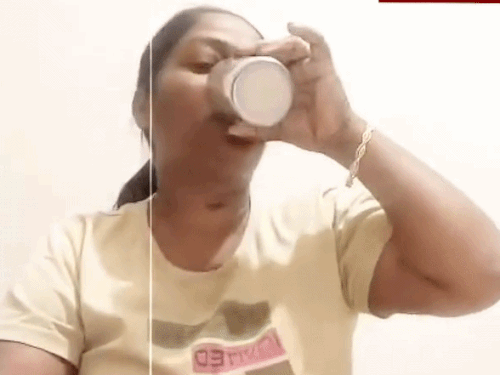जहर निगलने से पहले बोतल दिखाती महिला।