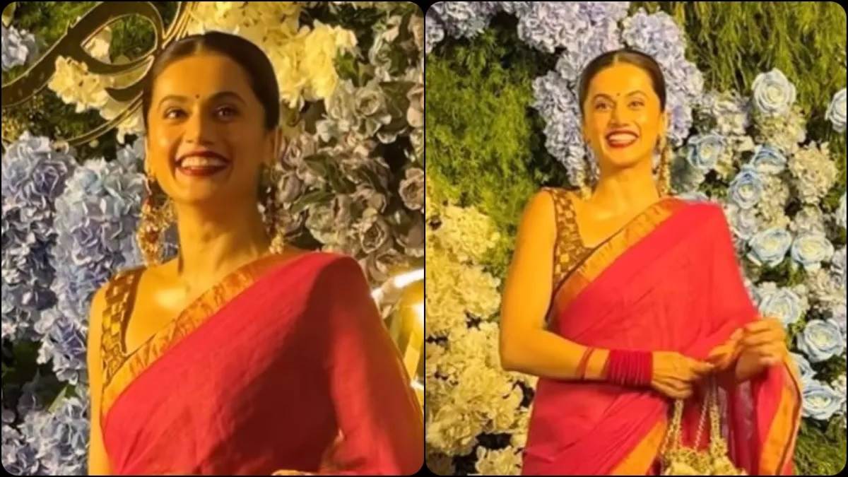 ਤਾਪਸੀ ਪੰਨੂ ਨੇ ਪਿਛਲੇ ਮਹੀਨੇ ਸਾਬਕਾ ਬੈਡਮਿੰਟਨ ਖਿਡਾਰੀ ਮੈਥਿਆਸ ਬੋ ਨਾਲ ਚੁੱਪ-ਚੁਪੀਤੇ ਵਿਆਹ ਕਰਵਾ ਲਿਆ ਸੀ। ਡੰਕੀ ਅਦਾਕਾਰਾ ਨੇ ਕਿਸੇ ਨੂੰ ਵੀ ਆਪਣੇ ਵਿਆਹ ਦੀ ਭਿਣਕ ਨਾ ਲੱਗਣ ਦਿੱਤੀ। ਕੁਝ ਦਿਨ ਪਹਿਲਾਂ ਹੀ ਅਦਾਕਾਰਾ ਨੇ ਆਪਣੇ ਵਿਆਹ ਨੂੰ ਕਨਫਰਮ ਕੀਤਾ ਤੇ ਹੁਣ ਉਹ ਲਾਲ ਸਾੜੀ ਵਿਚ ਸਪਾਟ ਹੋਈ। ਉਸ ਦੀਆਂ ਤਸਵੀਰਾਂ ਤੇ ਵੀਡੀਓਜ਼ ਸੋਸ਼ਲ ਮੀਡੀਆ ‘ਤੇ ਵਾਇਰਲ ਹੋ ਰਹੀਆਂ ਹਨ।