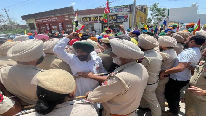 ਦਰਜਨਾਂ ਆਗੂਆਂ ਨੂੰ ਪੁਲਿਸ ਦੇ ਸੈਂਕੜੇ ਜਵਾਨਾਂ ਵੱਲੋਂ ਭਾਜਪਾ ਉਮੀਦਵਾਰ ਦੀ ਰੈਲੀ ਵਿੱਚ ਜਾਣ ਤੋਂ ਰੋਕਿਆ ਜਾ ਰਿਹਾ ਸੀ।