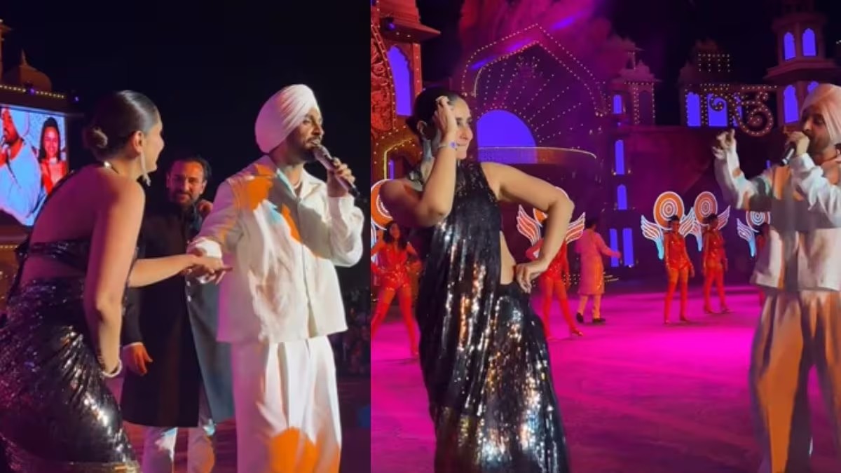 ਦਿਲਜੀਤ ਦੋਸਾਂਝ ਦੀ ਇਕ ਵੀਡੀਓ ਰੱਜ ਕੇ ਵਾਇਰਲ ਹੋ ਰਹੀ ਹੈ, ਜਿਸ ਵਿੱਚ ਉਹ ਅਨੰਤ ਰਾਧਿਕਾ ਦੇ ਪ੍ਰੀ ਵੈਡਿੰਗ ਫੰਕਸ਼ਨ ‘ਚ ਸਟੇਜ ਪਰਫਾਰਮੈਂਸ ਦੇ ਰਹੇ ਹਨ। ਇਸ ਦਰਮਿਆਨ ਦੋਸਾਂਝਵਾਲੇ ਨਾਲ ਸਟੇਜ ‘ਤੇ ਸੈਫ ਤੇ ਕਰੀਨਾ ਵੀ ਨਜ਼ਰ ਆਏ। ਦਿਲਜੀਤ ਨੇ ਸੈਫ ਦੇ ਸਾਹਮਣੇ ਹੀ ਉਨ੍ਹਾਂ ਦੀ ਪਤਨੀ ਕਰੀਨਾ ਨਾਲ ਰੱਜ ਕੇ ਫਲਰਟ ਕੀਤਾ। ਦਿਲਜੀਤ ਨੇ ਕਰੀਨਾ ਦਾ ਹੱਥ ਫੜ ਕਿਹਾ, ‘ਹੋਵੇਗੀ ਰਿਹਾਨਾ, ਹੋਵੇਗੀ ਬਿਓਂਸੇ, ਸਾਡੀ ਤਾਂ ਕਰੀਨਾ ਕਪੂਰ ਆ।’ ਇਸ ‘ਤੇ ਸੈਫ ਅਲੀ ਖਾਨ ਦਾ ਰਿਐਕਸ਼ਨ ਦੇਖਣ ਵਾਲਾ ਸੀ। ਇਸ ਤੋਂ ਬਾਅਦ ਕਰੀਨਾ ਦਿਲਜੀਤ ਦੇ ਗੀਤਾਂ ‘ਤੇ ਡਾਂਸ ਕਰਦੀ ਨਜ਼ਰ ਆਈ। ਦੇਖੋ ਇਹ ਵੀਡੀਓ: