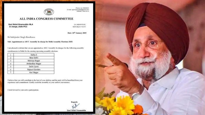 ਦਿੱਲੀ ‘ਚ 5 ਫਰਵਰੀ ਨੂੰ ਹੋਣ ਵਾਲੀਆਂ ਵਿਧਾਨ ਸਭਾ ਚੋਣਾਂ ਲਈ ਕਾਂਗਰਸ ਨੇ ਗੁਰਦਾਸਪੁਰ ਤੋਂ ਸੰਸਦ ਮੈਂਬਰ ਸੁਖਜਿੰਦਰ ਸਿੰਘ ਰੰਧਾਵਾ ਨੂੰ ਵੱਡੀ ਜ਼ਿੰਮੇਵਾਰੀ ਦਿੱਤੀ ਹੈ। ਉਨ੍ਹਾਂ ਨੂੰ ਸੱਤ ਵਿਧਾਨ ਸਭਾ ਹਲਕਿਆਂ ਦਾ ਇੰਚਾਰਜ ਬਣਾਇਆ ਗਿਆ ਹੈ। ਇਨ੍ਹਾਂ ਵਿਧਾਨ ਸਭਾ ਹਲਕਿਆਂ ਵਿੱਚ ਕਾਲਕਾ, ਨਵੀਂ ਦਿੱਲੀ, ਮਾਲਵੀਆ ਨਗਰ, ਅੰਬੇਡਕਰ ਨਗਰ, ਦਿੱਲੀ ਕੈਂਟ, ਰਾਜੌਰੀ ਗਾਰਡਨ ਅਤੇ ਹਰੀ ਨਗਰ ਸ਼ਾਮਲ ਹਨ। ਪੰਜਾਬ ਦੇ ਵੋਟਰਾਂ ਦੀ ਗਿਣਤੀ ਇੱਥੇ ਜ਼ਿਆਦਾ ਹੈ।